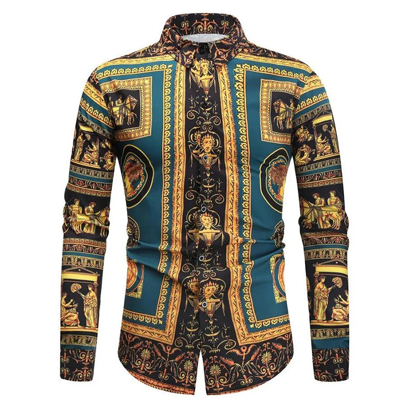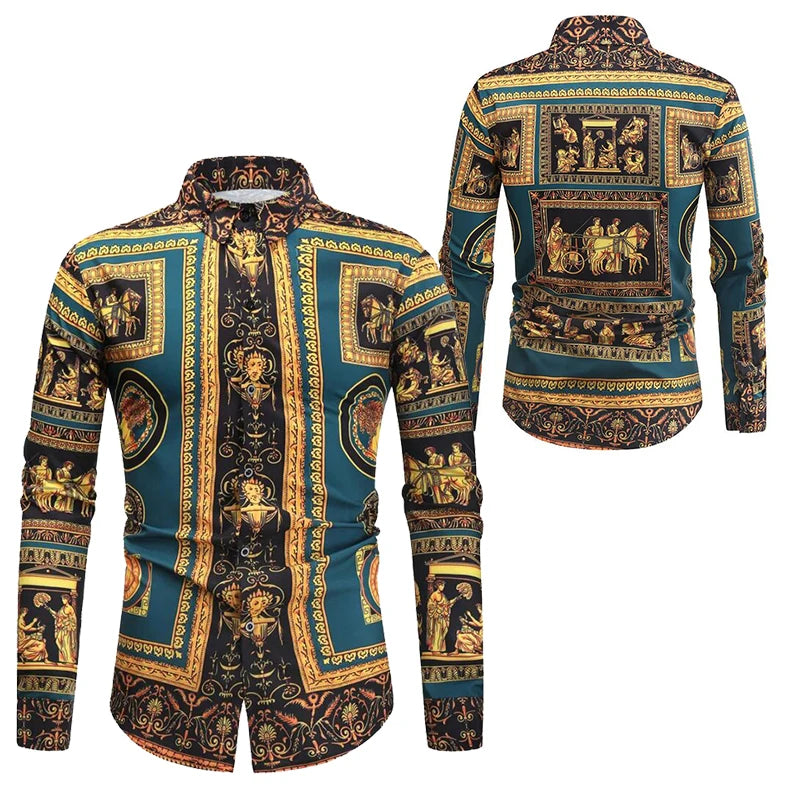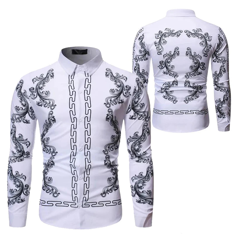 Die glatte, leicht glänzende Stoffqualität liegt angenehm auf der Haut und verleiht dem Hemd einen edlen Charakter. Der klassische Kentkragen und die verdeckte Knopfleiste sorgen dafür, dass der Look trotz maximalem Print stilvoll und hochwertig bleibt. Kombiniert mit einer schlichten schwarzen Hose oder Jeans steht das Hemd für ein selbstbewusstes, modernes Fashion-Statement.