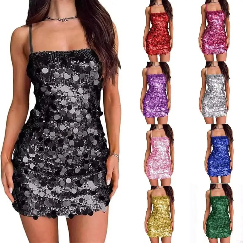 Der figurbetonte Schnitt, die zarten Spaghettiträger und die kurze Länge setzen deine Silhouette perfekt in Szene – ideal für Clubnächte, Silvester, Geburtstage oder besondere Events.