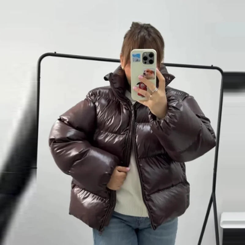 Die Glossy Urban Puffer Jacket kombiniert modernen Streetwear-Style mit maximaler Wärme. Durch ihr markantes, glänzendes Finish wird sie sofort zum Hingucker, während die voluminöse, isolierende Füllung zuverlässig warm hält.