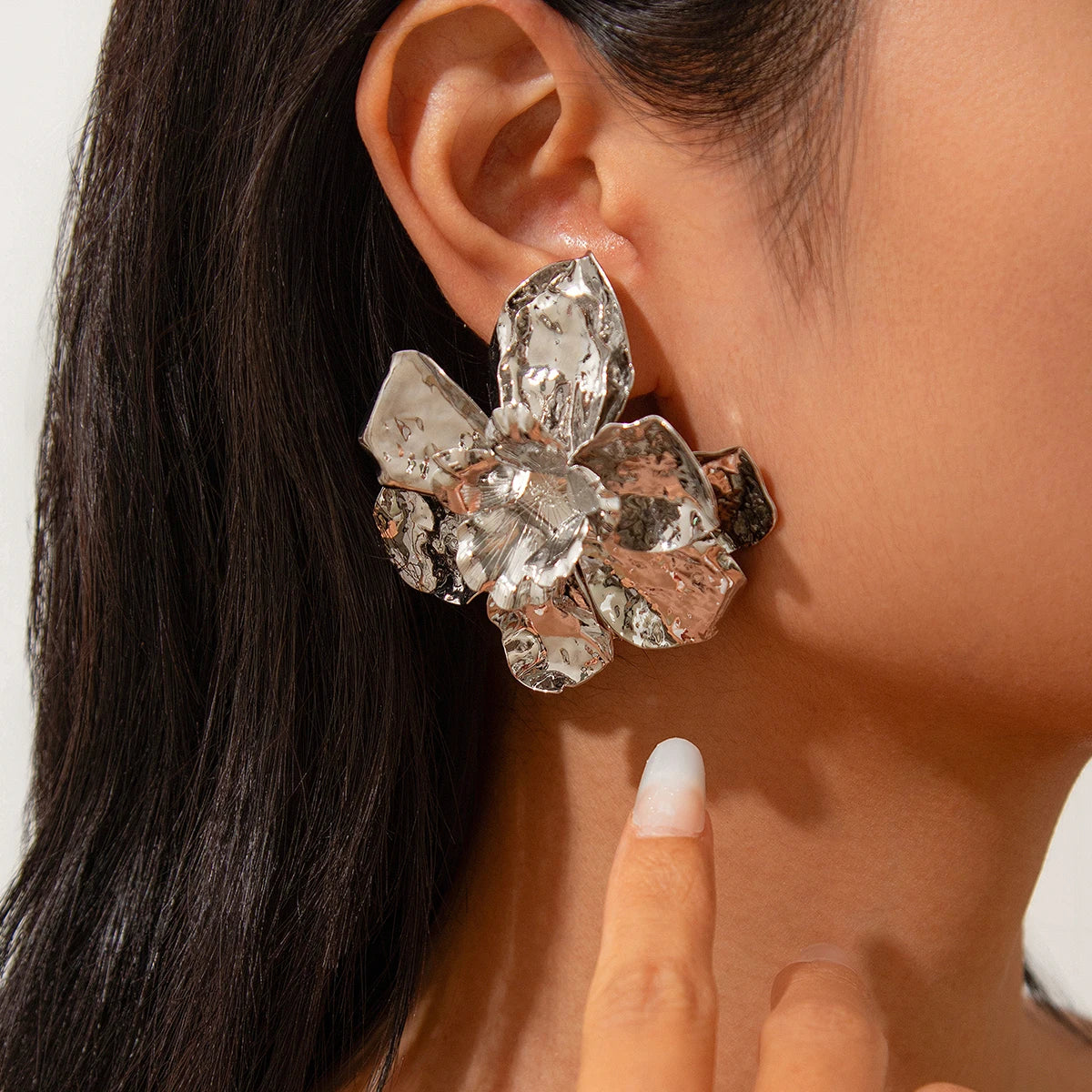 Die organischen, leicht unregelmäßigen Metallstrukturen reflektieren das Licht besonders intensiv und verleihen den Ohrringen eine exklusive, handgefertigte Optik. Feminin, mutig und absolut einzigartig – diese Ohrringe verwandeln jedes Outfit in einen High-Fashion-Moment.