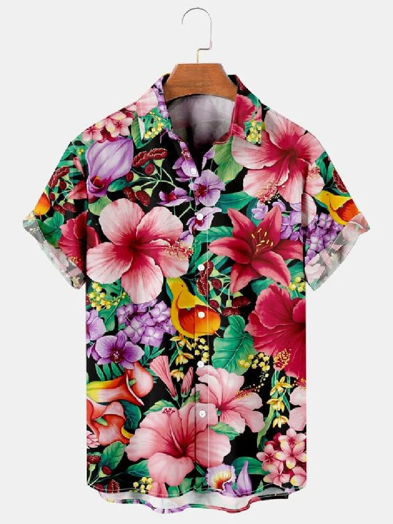 Erhältlich in mehreren Varianten mit unterschiedlichen, kunstvoll arrangierten Blumenmustern – von kräftigen Rosen bis zu subtileren Farbverläufen. Das Hemd passt perfekt zu Jeans, Chinos oder eleganten Hosen und ist ideal für Abende, Events oder den Alltag mit Stil.