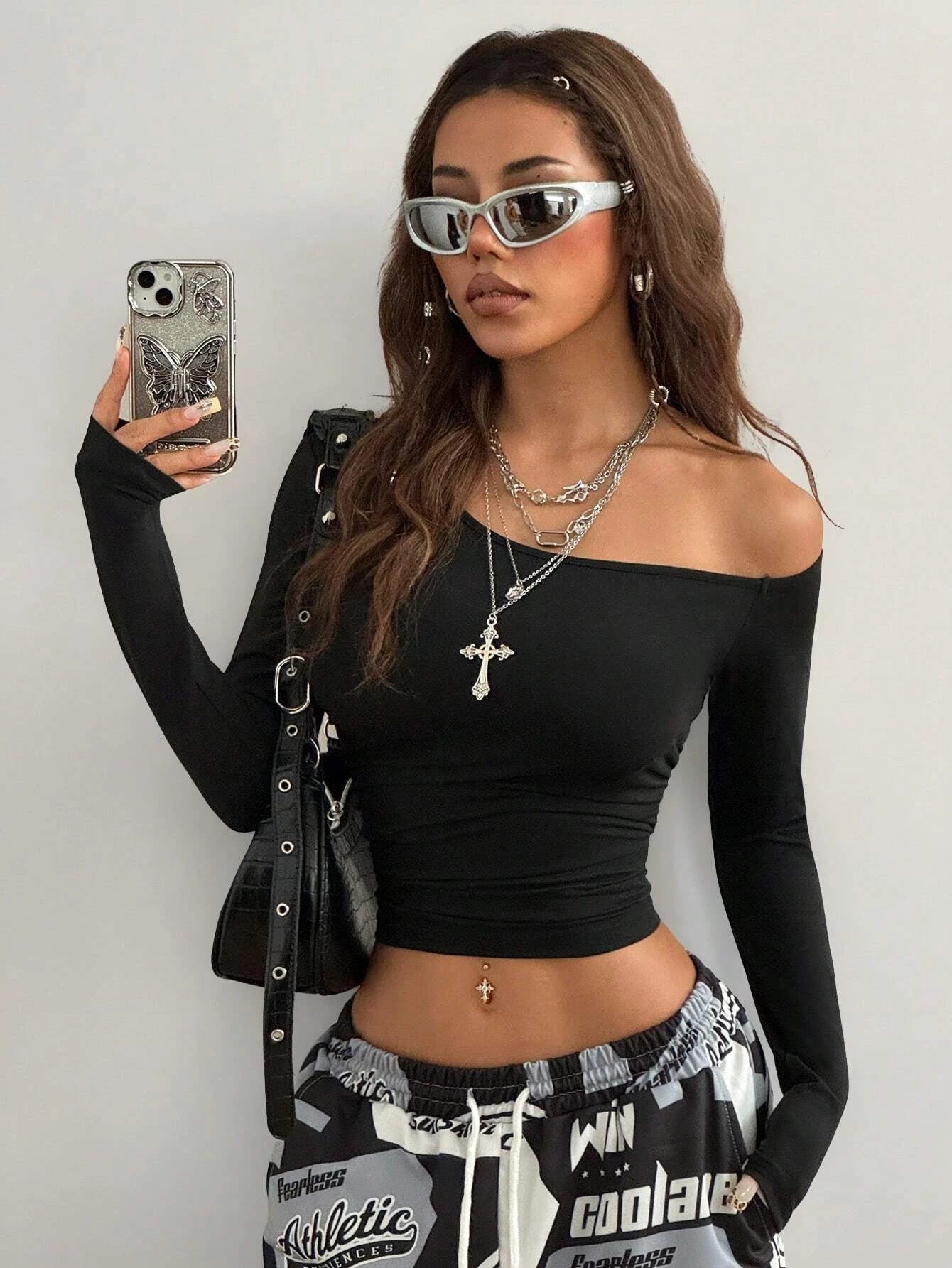 Der Cropped-Schnitt verleiht dem Top eine moderne Note, während die langen Ärmel einen harmonischen Kontrast schaffen. Ob kombiniert mit Jeans, Cargo Pants oder einem Rock – dieses Top ist ein vielseitiges Highlight für jeden Kleiderschrank.