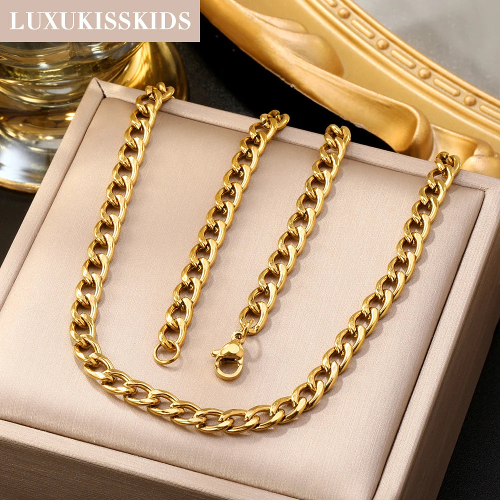 Die LUXUKISSKIDS Panzerkette vereint zeitloses Design mit moderner Eleganz. Hergestellt aus hochwertigem, hautfreundlichem Edelstahl bietet sie einen edlen Glanz und außergewöhnliche Langlebigkeit – erhältlich in Silber oder Gold.