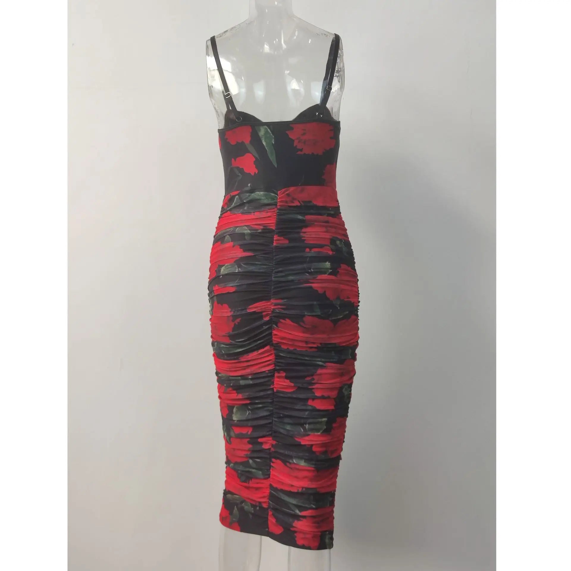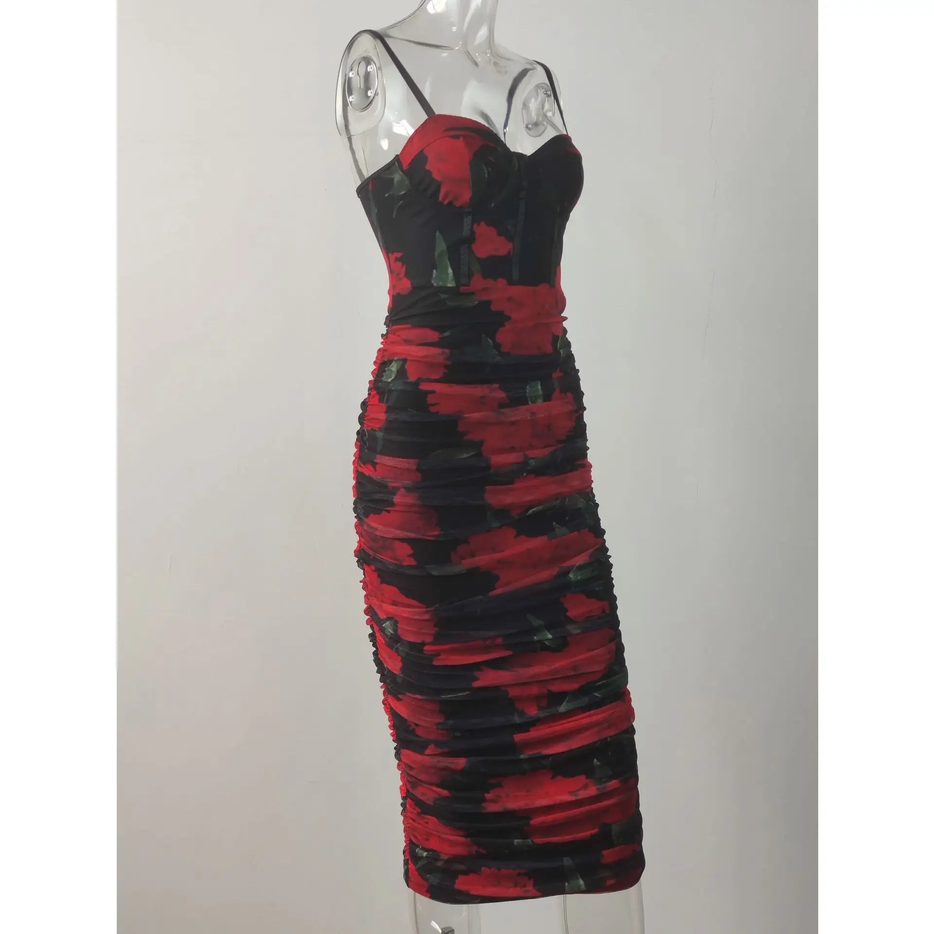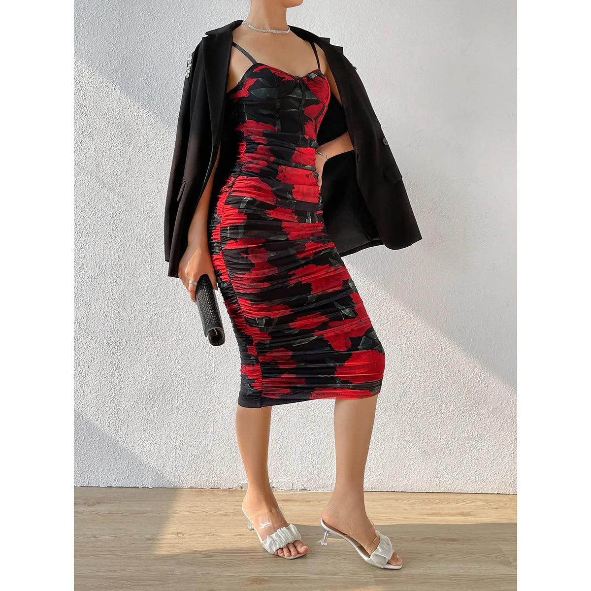 Das Warenbar „Scarlet Rose Muse Dress“ ist pure Eleganz mit einem Hauch Verführung. Das körpernahe Midikleid kombiniert ein tiefes Schwarz mit intensiven roten Rosenprints, die den Körper perfekt umrahmen und eine feminine Silhouette betonen.