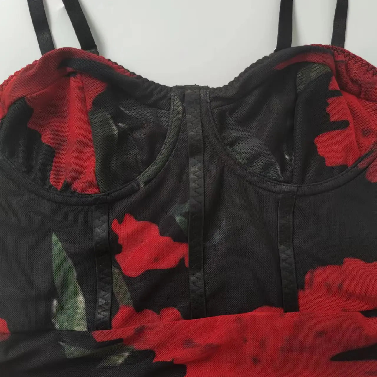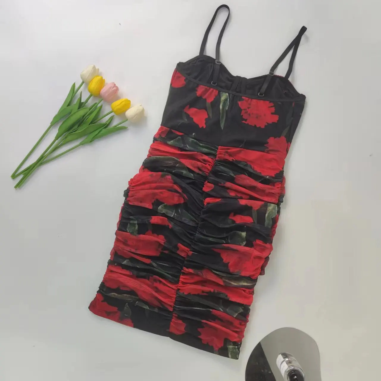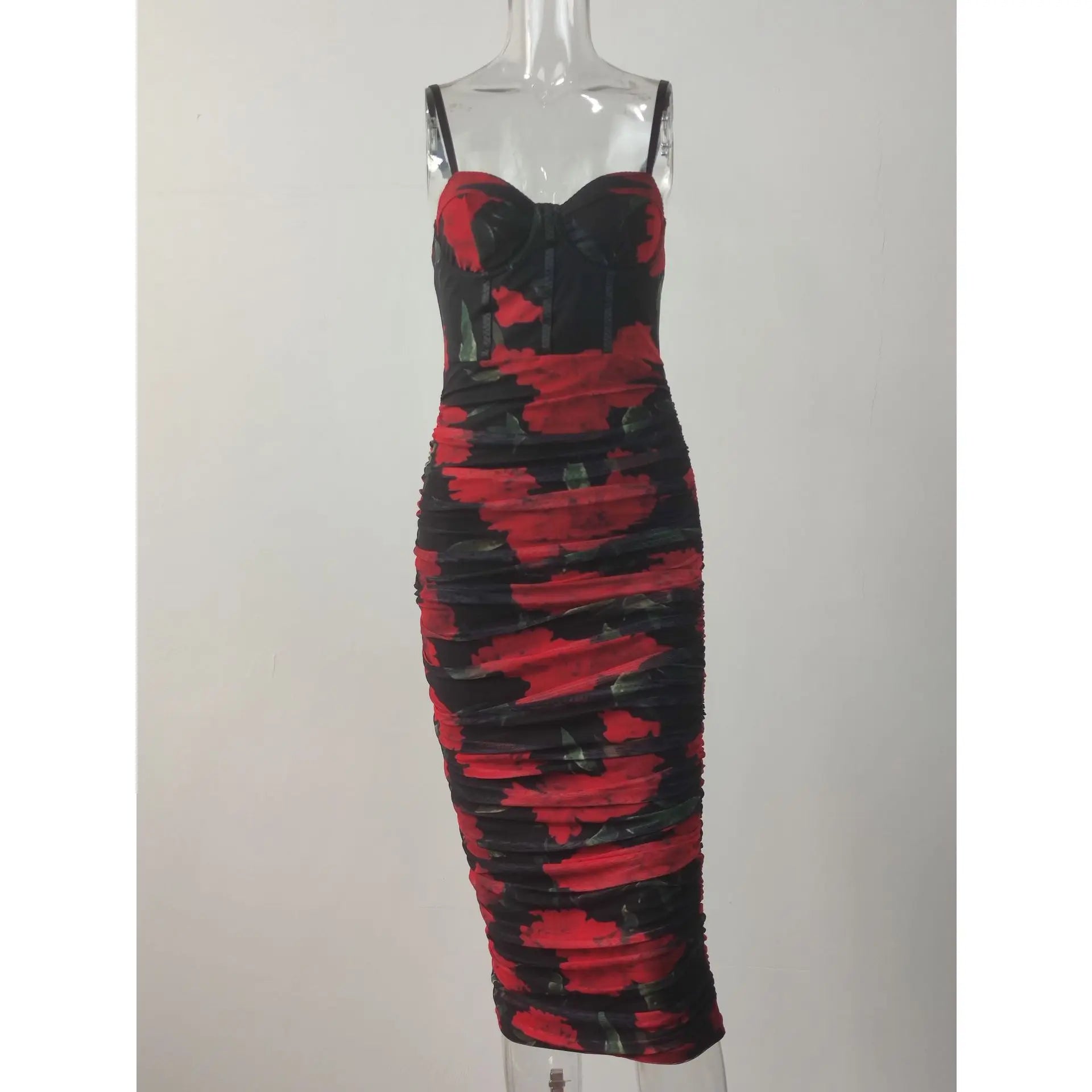 Das Warenbar „Scarlet Rose Muse Dress“ ist pure Eleganz mit einem Hauch Verführung. Das körpernahe Midikleid kombiniert ein tiefes Schwarz mit intensiven roten Rosenprints, die den Körper perfekt umrahmen und eine feminine Silhouette betonen.