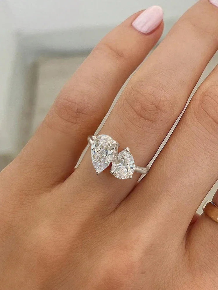 Der Twin Spark Ring von Warenbar steht für pure Eleganz und moderne Raffinesse. Zwei funkelnde Zirkonia-Steine in Tropfen- und Rundschliff bilden das perfekte Duo – ein Symbol für Balance, Liebe und Stärke.